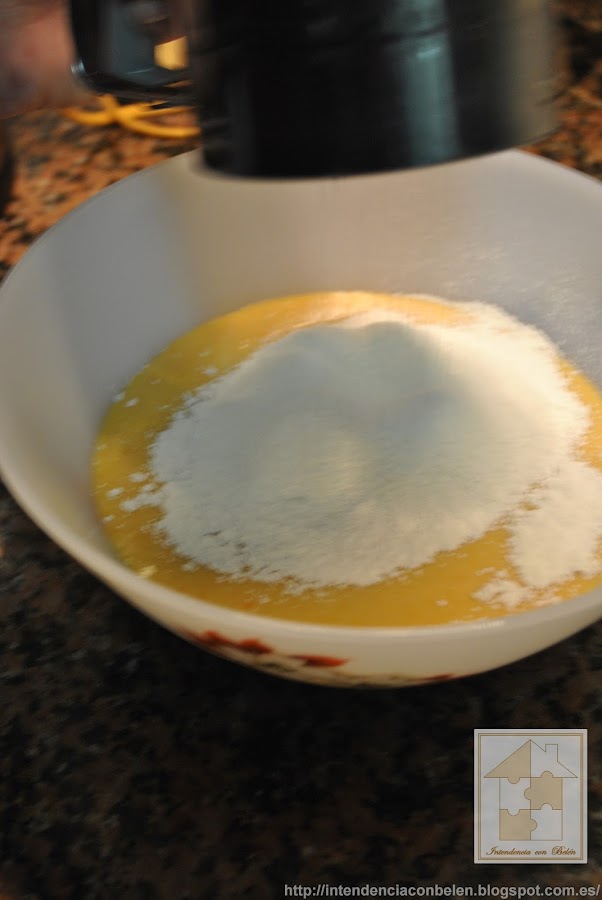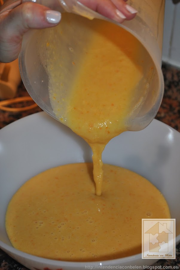 Sólo queda añadir el aceite, que debe ser de girasol, ya que si usáis aceite de oliva, se comerá el sabor de La naranja y no encontraréis gracia alguna a este bizcocho.