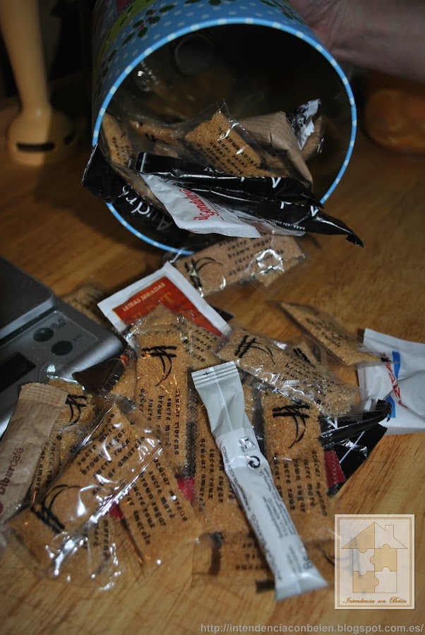 Le toca el turno al azúcar. Tengo que contaros que mi marido, cuando toma café o té fuera de casa, va guardando los azucarillos que suelen poner. Bueno, pues a veces tenemos gran cantidad de ellos, y hoy ha tocado hacer uso de los mismos. Los he aprovechado por igual tanto los de azúcar blanca como morena. Y el resultado me ha encantado.
