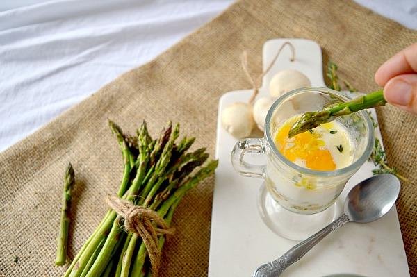 Desde Patty's Cake nos traen estos ricos Huevos a la taza con champiñones y espárragos. Una excelente idea para un primer plato o una cena ligera. Necesitas saltear ajo con los champiñones y los espárragos. Se sirven en copas y se ponen a cocer con las claras, entre otros ingredientes. Se añade la yema y se deja cocer hasta tener el punto deseado según que tan cuajados prefieres que te queden los huevos. A mi, igual que a Patty, me gusta que la clara quede bien cuajada y la yema no tanto. Nos recomienda acompañar de pan tostado o espárragos crudos.