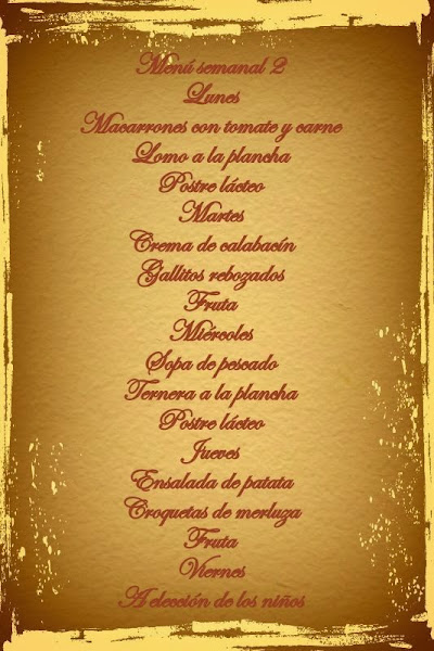 Hace un ratito os he dejado una receta de cocina, ahora os dejo el menú de toda la semana.