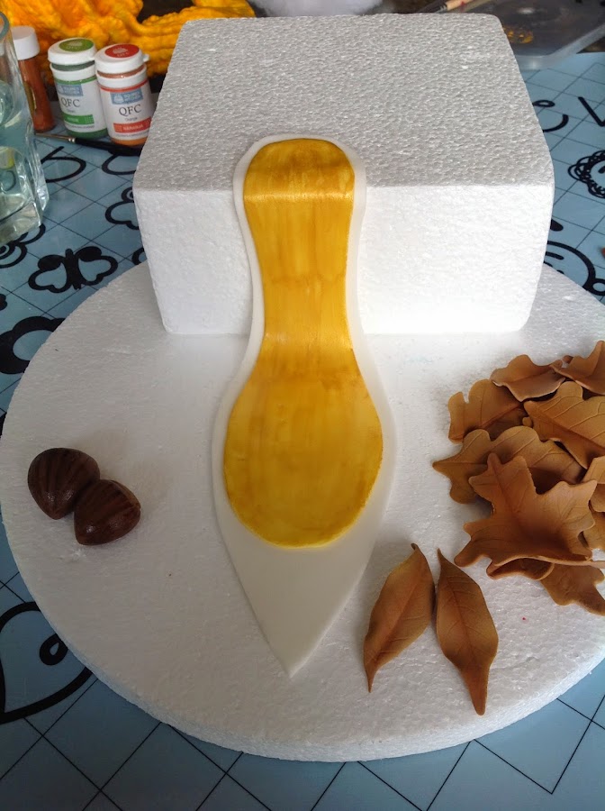 (El fondant marrón y el amarillo podemos obtenerlo tiñendo fondant blanco con colorantes marrón y amarillo).