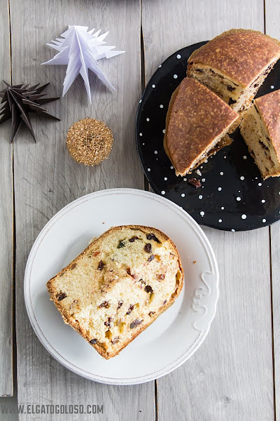 Hoy, después de mucho trabajo, estoy felíz de poder mostrarles el resultado final. Esta fórmula es diferente a la que utilicé el año pasado, contiene solo yemas de huevo y una cantidad considerablemente alta de mantequilla, y aunque pienso que hay cosas que definitivamente hay que mejorar (como la distribución de las frutas y el boleado) puedo garantizar que de sabor ha quedado DELIZIOSO (así, en italiano).