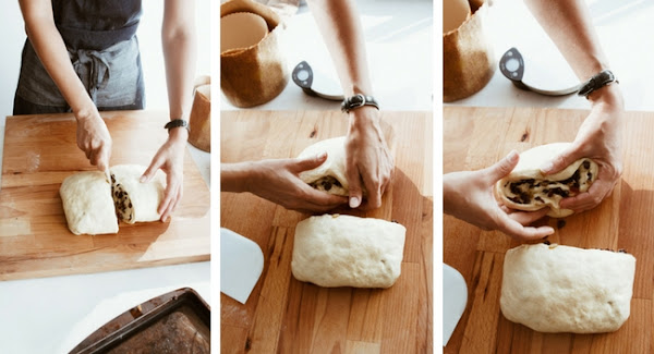 Al bolear la masa, las frutas no deben quedar expuestas en la superficie porque se quemarán durante el horneado (las pasas quemadas son amargas y saben horrible).