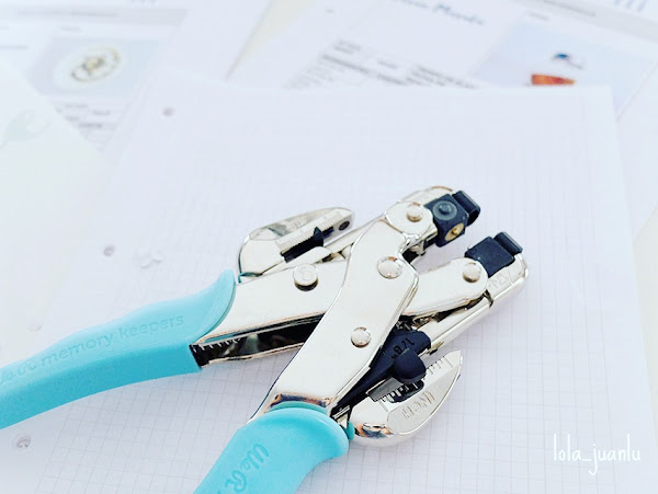 Para poder archivar, tanto las recetas como los separadores de las diferentes secciones y el índice en las carpetas con anillas, tenemos que hacerles los agujeros correspondientes y, para ello, hemos utilizado la Crop-A-Dile y una hoja de las que venían en los archivadores, que nos sirve de guía.