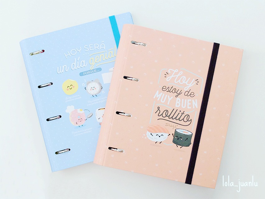 He elegido estas dos carpetas con anillas porque me han parecido muy prácticas además de bonitas. La cinta elástica que llevan hacen que no se abran y las páginas del recetario queden bien sujetas, de manera que no se deformará con el tiempo.