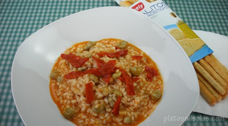 Inma, la autora del blog "Platos Plis Plas", propone este risotto con habas baby y usando la sobrasada en lugar de la mantequilla. Me parece una apuesta original y espectacular que ya estoy deseando probar.