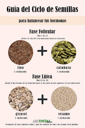 ∇ Si no identificas cuándo ovulas o si tus ciclos son irregulares, no importa, empieza comiendo las semillas en tu primer día de menstruación y cuenta dos semanas y dos semanas. Eventualmente se puede ir regularizando tu ciclo.