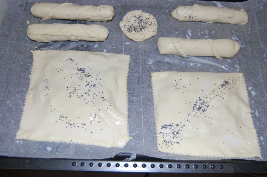 Con los sobrantes de la masa decoramos pintamos con leche ( se puede hacer tambien con huevo, pero no me apetecía que quedara demasiado brillante ) y decoramos con las semillas de amapola, si las tenemos, si no,no es necesario.
