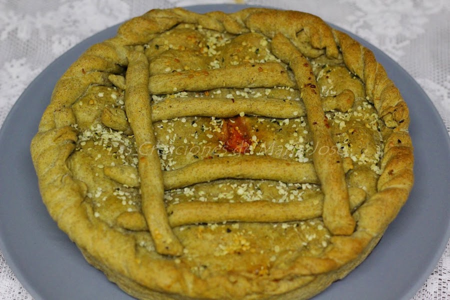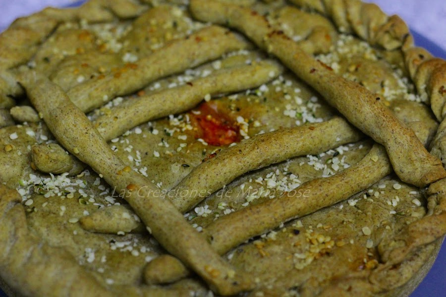 Repartimos la masa en 2. Estiramos la masa y la colocamos en el molde o bandeja. Echamos la carne picada y por encima el queso rallado. Estiramos la otra masa, tapamos la empanada y la sellamos con los dedos. Si os ha sobrado masa hacemos unos palitos y los colocamos. Hacemos un agujero en el centro, untamos con aceite y echamos por encima unas semillas de cáñamo. Metemos al horno a 180º calor arriba y abajo, hasta que este dorada. Esperamos un poco a que se enfrié para comerla.