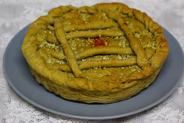 Yo hice una empanada pequeña, el plato es un plato llano normal, así que como me sobro masa hice un bollito de pan. Con estos ingredientes os sale una empanada para 4 personas (echando mas carne), si queréis hacer una empanada de tamaño de la bandeja del horno doblar los ingredientes.
