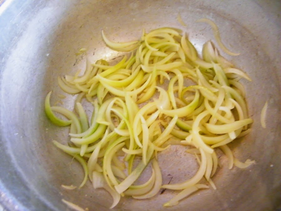 3. Pochamos la cebolla con una cucharada de aceite y un poco de sal. Lo dejamos tapado y a fuego lento-medio para que se vaya haciendo.