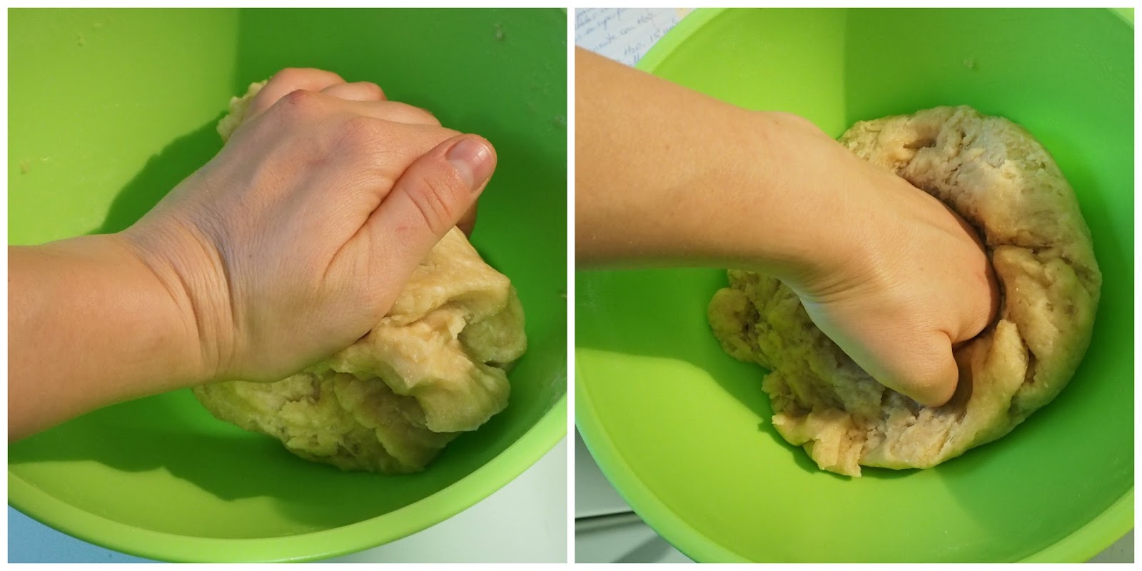 - Mezclamos la harina, la levadura y el agua en un bol.