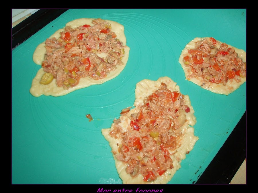 Me sobró un poquito de masa y de relleno y lo estire y lo puse como si fueran miniraciones....