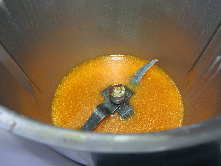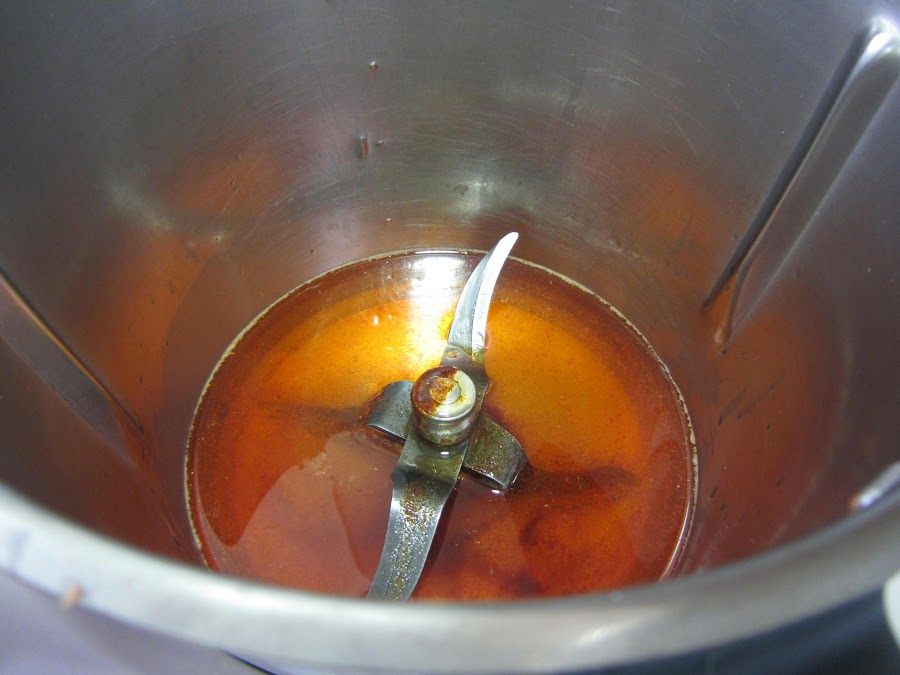 Y ponemos en el vaso de la Thermomix los 100 gramos de aceite, añadimos el pimentón, y lo calentamos durante 2 minutos a 80º.