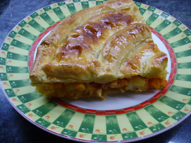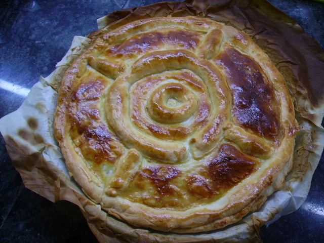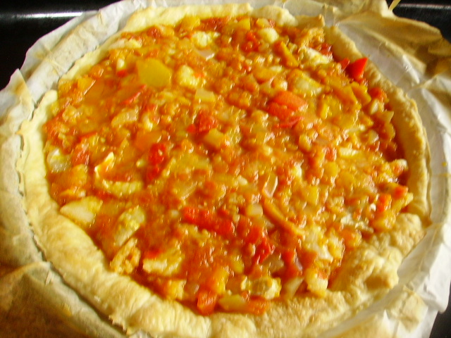 6.- Cubrimos con la otra masa y recortamos los bordes. Con la masa sobrante hacemos el decorado que deseemos. Si nos queda mas masa podemos hacer empanadillas pequeñitas y rellenar de sofrito.
