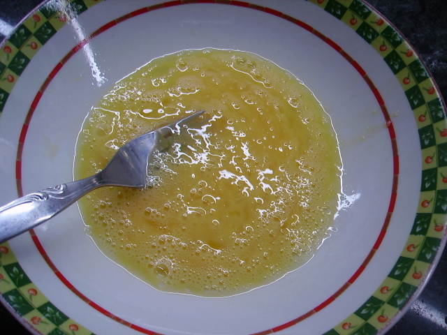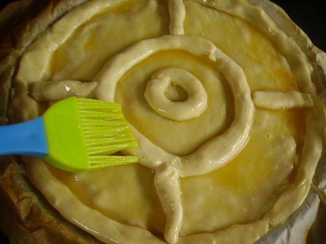 7.- Batimos el huevo y pintamos la superficie de la empanada.