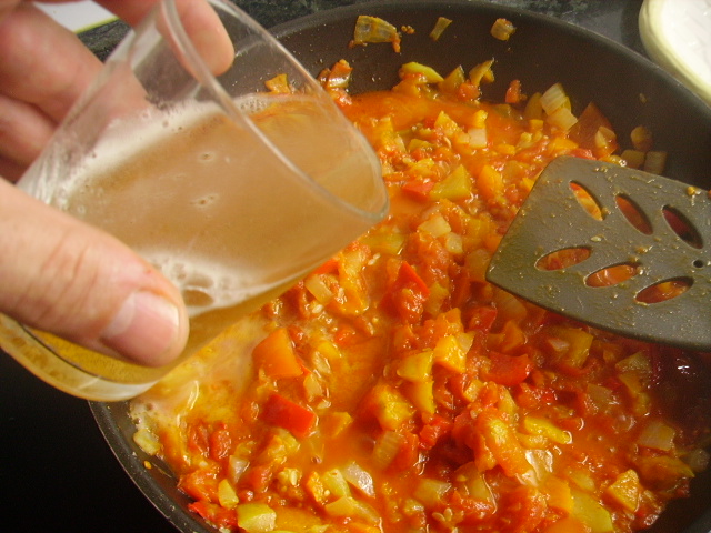 2.- Cuando esté hecho, agregamos la cerveza y dejamos unos minutos que evapore.