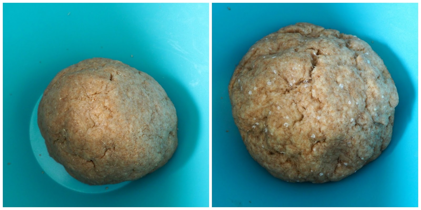 - Hacemos una bola y dejamos reposar, tapada con un paño húmedo, hasta que doble su volumen (al menos 30-45 minutos).