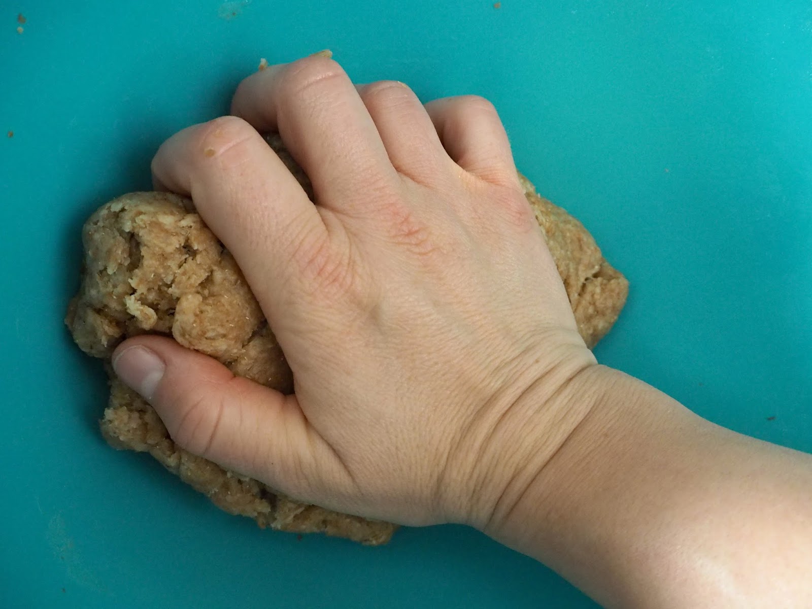 - Mezclamos todo y amasamos hasta obtener una masa compacta y fina.