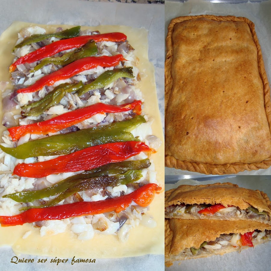 Tenía ganas de hacer una empanada con bacalao. No creo que necesite mucha presentación, no es precisamente de las más originales, pero yo diría que tampoco es de las más fáciles porque como no se tenga cuidado con el desalado y la hidratación del pescado podemos llevarnos un buen disgusto. Si pensamos hacerla tenemos que tener previsión porque un trozo de bacalao de medio quilo necesitará, por lo menos, estar tres días a remojo.