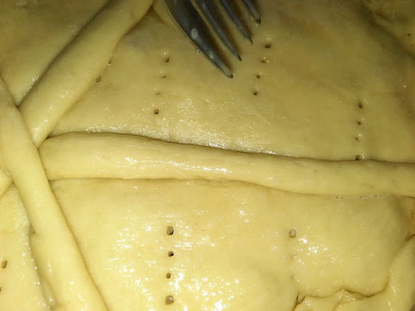 Pintamos con huevo batido y luego pinchamos con el tenedor