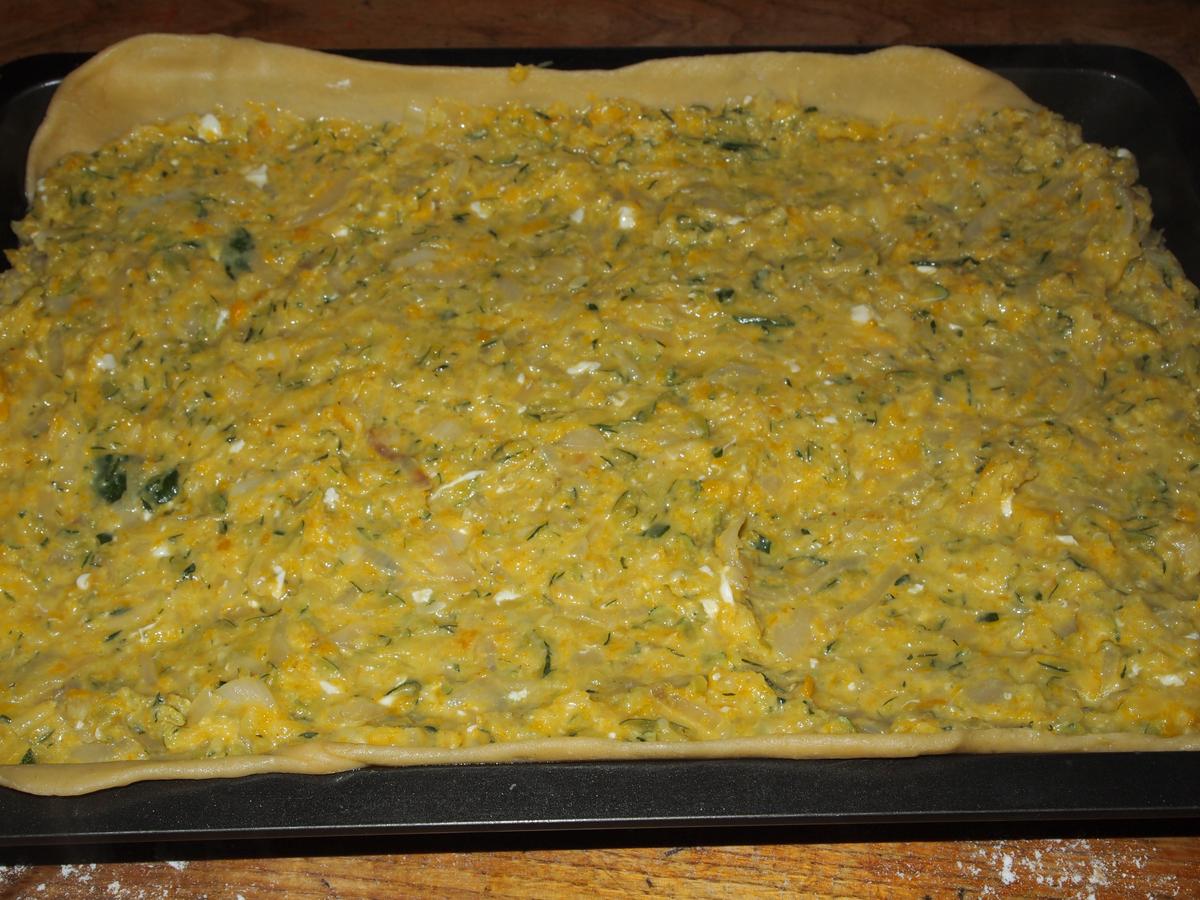 Batir los huevos ligeramente e incorporar a las verduras junto con el queso salpimentar al gusto y reservar mientras se hace la masa.
