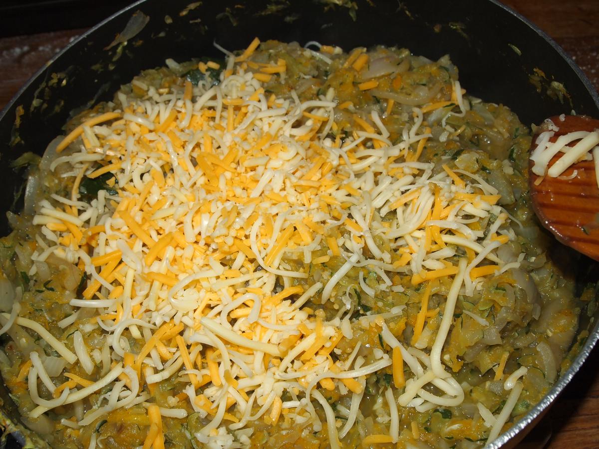 Una vez transparenten las cebollas es hora de añadir los calabacines y rehogar todo a fuego medio alto durante unos 10 minutos, o hasta que veamos que el calabacín ha perdido buena parte del agua y se ha comenzado a dorar.