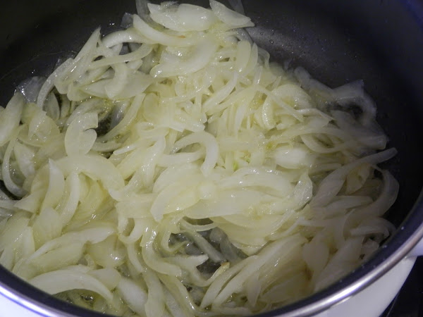 Añade la cebolla y pon un poco de sal, deja que poche.