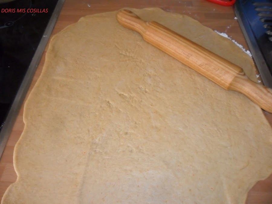 Extendemos la masa mas grande, y damos la forma que mas nos guste y lo mas fina posible.