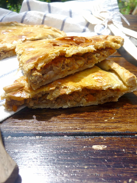 Ésta la hice con las sobras de carne de las brochetas de albóndigas que os enseñé el otro día. Una de las cosas buenas que tienen las empanadas es que son perfectas como reciclaje, porque admiten de todo.