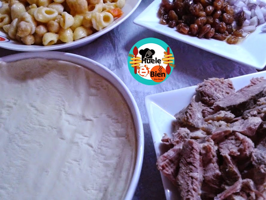 Para la cena de Fin de Año hice un caldo. Aparte algunos ingredientes del cocido, con ellos y unas laminas de hojaldre elabore esta empanada para el almuerzo de hoy.