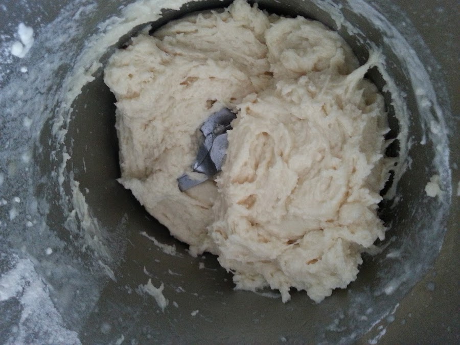 3. - Extendemos cada mitad dándole forma redonda. Una la colocamos sobre papel de horno.