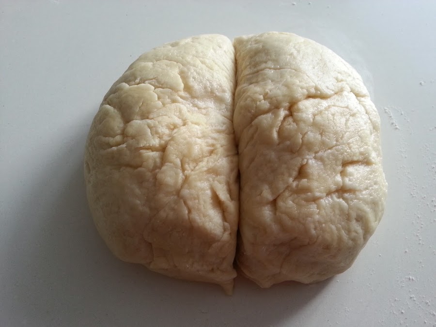 2. - Amasamos muy bien y hacemos una bola con la masa, que cortaremos en dos partes.
