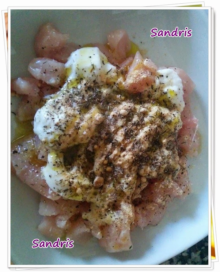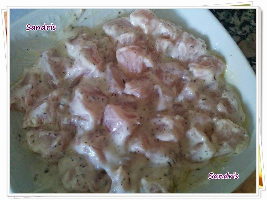Pimienta negraAntes que nada, había que marinar la pechuga de pollo para que cogiera el sabor de todos los ingredientes del marinado. Así que corté la pechuga de pollo a dados, le puse tomillo, albahaca, pimienta negra y un yogur natural. Lo dejé en la nevera durante dos horas para que todos los ingredientes se mezclasen bien y cogieran bien los sabores de todo en conjunto.