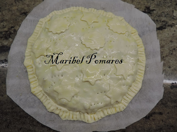 Extendemos la otra lamina de hojaldre y volvemos a poner el plato encima, para cortar la parte de arriba, del mismo tamaño que el plato.