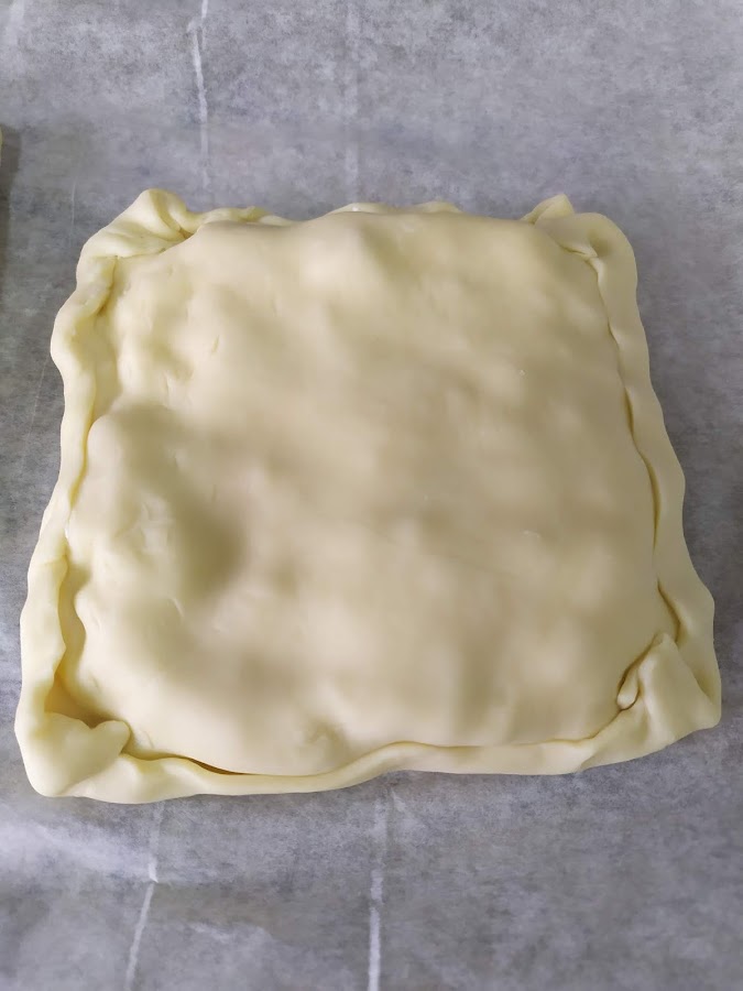 Corta en cuatro la lámina de hojaldre.
