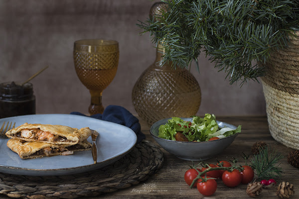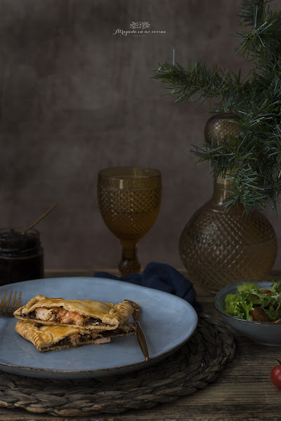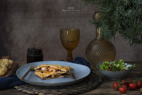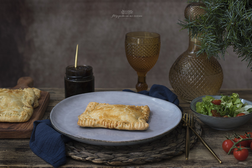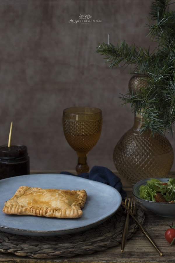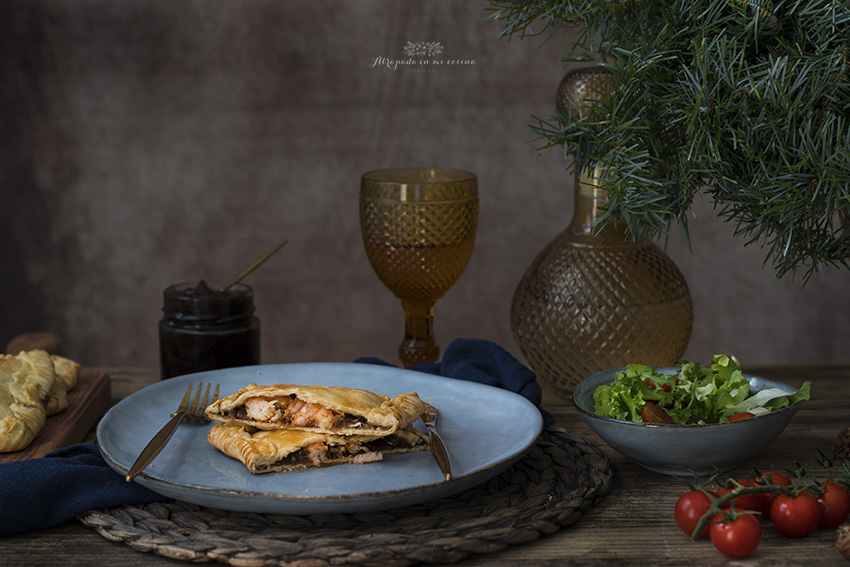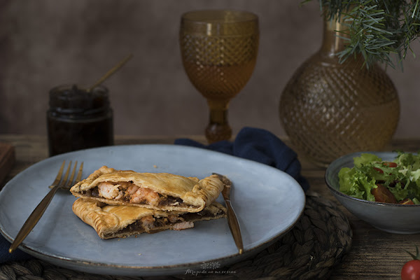 Se acercan fechas navideñas y no queremos complicarnos mucho en la cocina, porque lo que realmente nos apetece es sentarnos alrededor de la mesa con los nuestros. Así que, como siempre, os traigo una nueva propuesta fácil y rica. Se trata de una empanada de langostinos y cebolla caramelizada. Las he preparado en versión individual para que sea más fácil de servir. Podéis tenerlas preparadas con antelación y calentarlas después o, incluso, tomarlas templadas. La masa de empanada la podéis hacer vosotros mismos (os dejo receta aquí), aunque yo, en esta ocasión, he abreviado usando masa de empanada comercial.