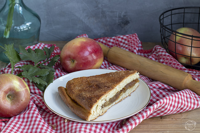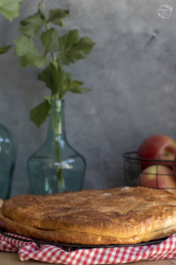 Siempre tengo manzanas en el frutero, es de esas frutas comodín que están todo el año y que gustan a todos. Pero a veces se van quedando en el frutero cediendo el paso a otras frutas de temporada. Por lo que cuando veo que tengo cuatro o cinco manzanas pienso en alguna receta con las que darle salida. Y esta empanada la tenía en pendientes desde que la vi en el blog Recetas de una gatita enamorada, donde ella la llama también tarta de manzana gallega o tarta celta. La masa es casera, pero yo creo que podéis poner también planchas de hojaldre del comercial.