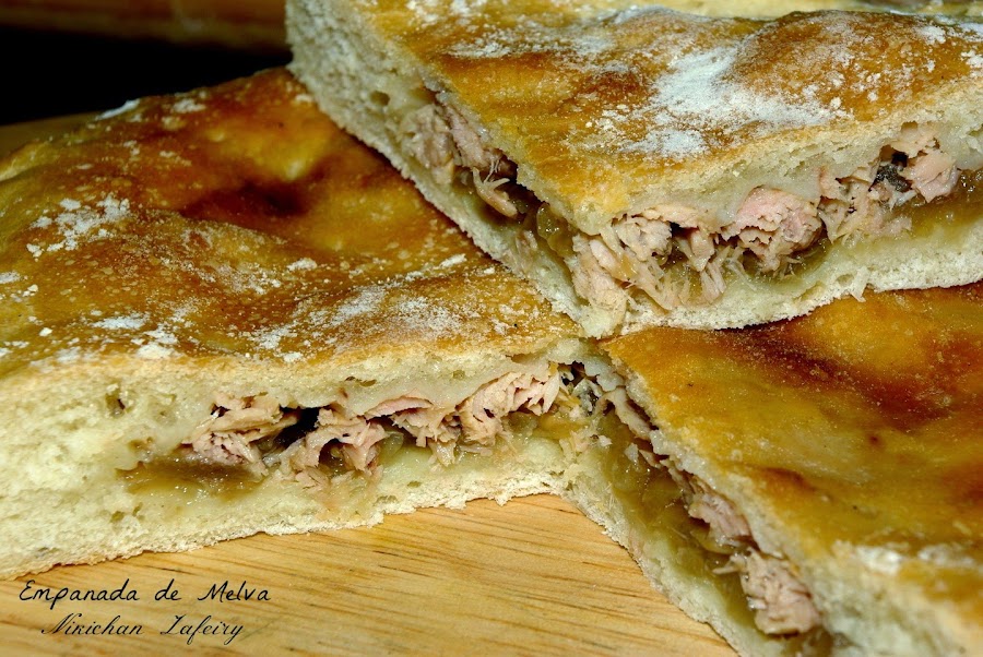 Hoy preparamos una empana para comer, en este caso de Melva Playas del Sur. Normalmente en casa solo la suelo preparar de atún o de bacalao, pues en cuanto a pescado son las que más gustan. Pero esta sin duda salió también muy rica, para repetir en más ocasiones porque no quedó ni un solo trozo. La masa la hice gorda tipo pan con masa de pizza que sobró.