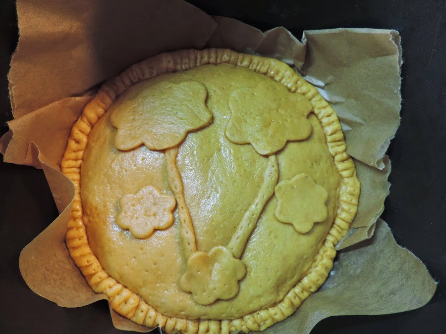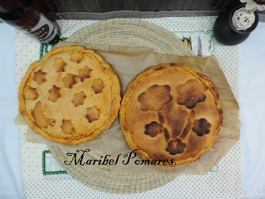 Las ponemos encima de la masa y lo pinchamos todo con un palillo, volvemos a pintar todo con huevo batido.