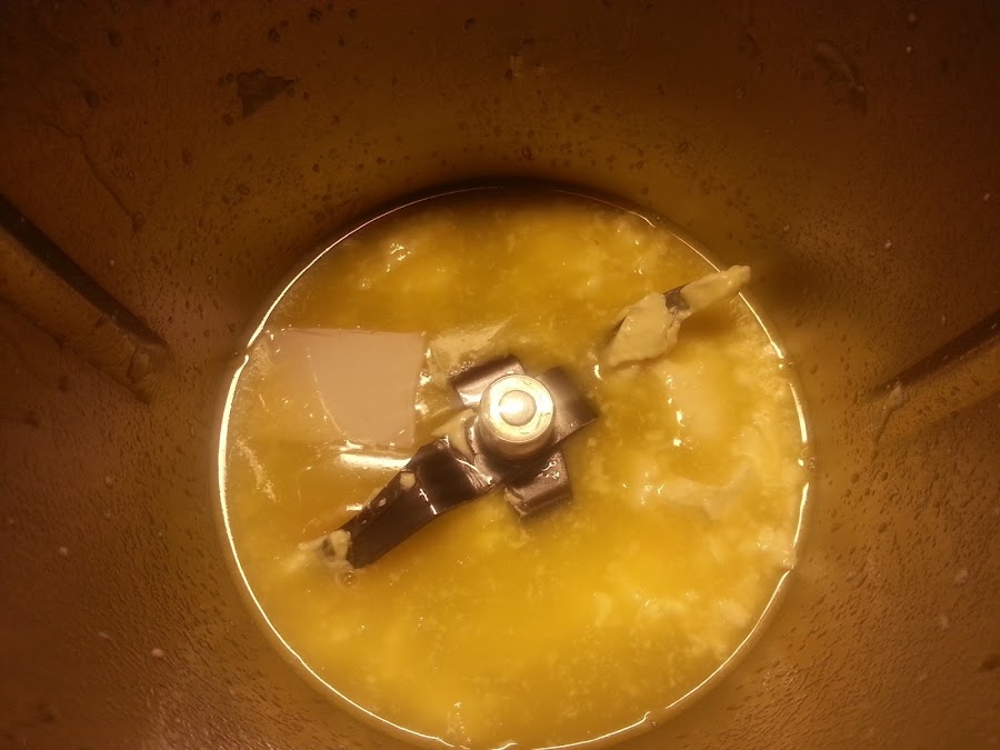 Poner en el vaso nata (crema de leche), aceite, champan y mantequilla.