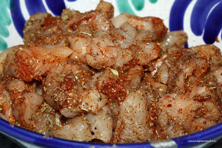 Cortamos las pechugas en dados pequeños y lo mezclamos con las especias.