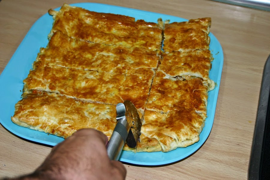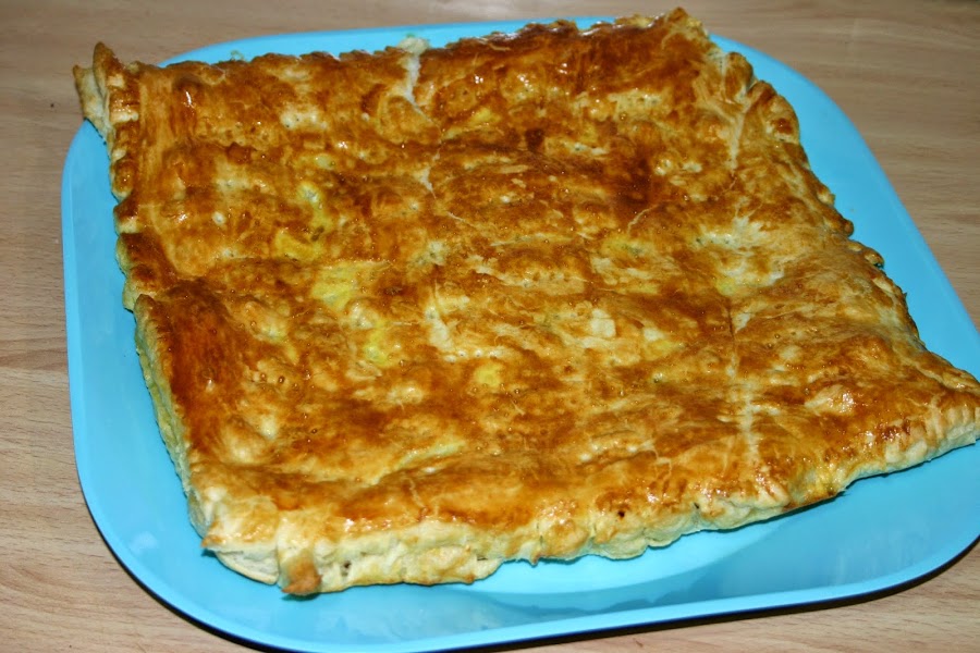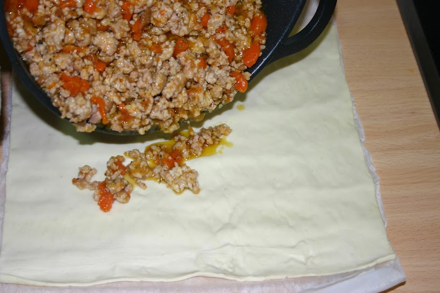 y lo metemos al horno a 180º hasta que el hojaldre dore, ya que la comida esta cocinada, solo tenemos que estar pendiente de que se haga el hojaldre, nada mas