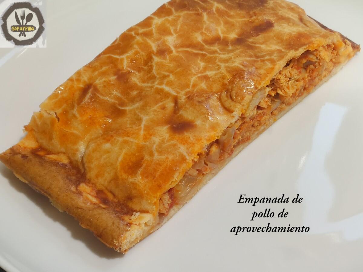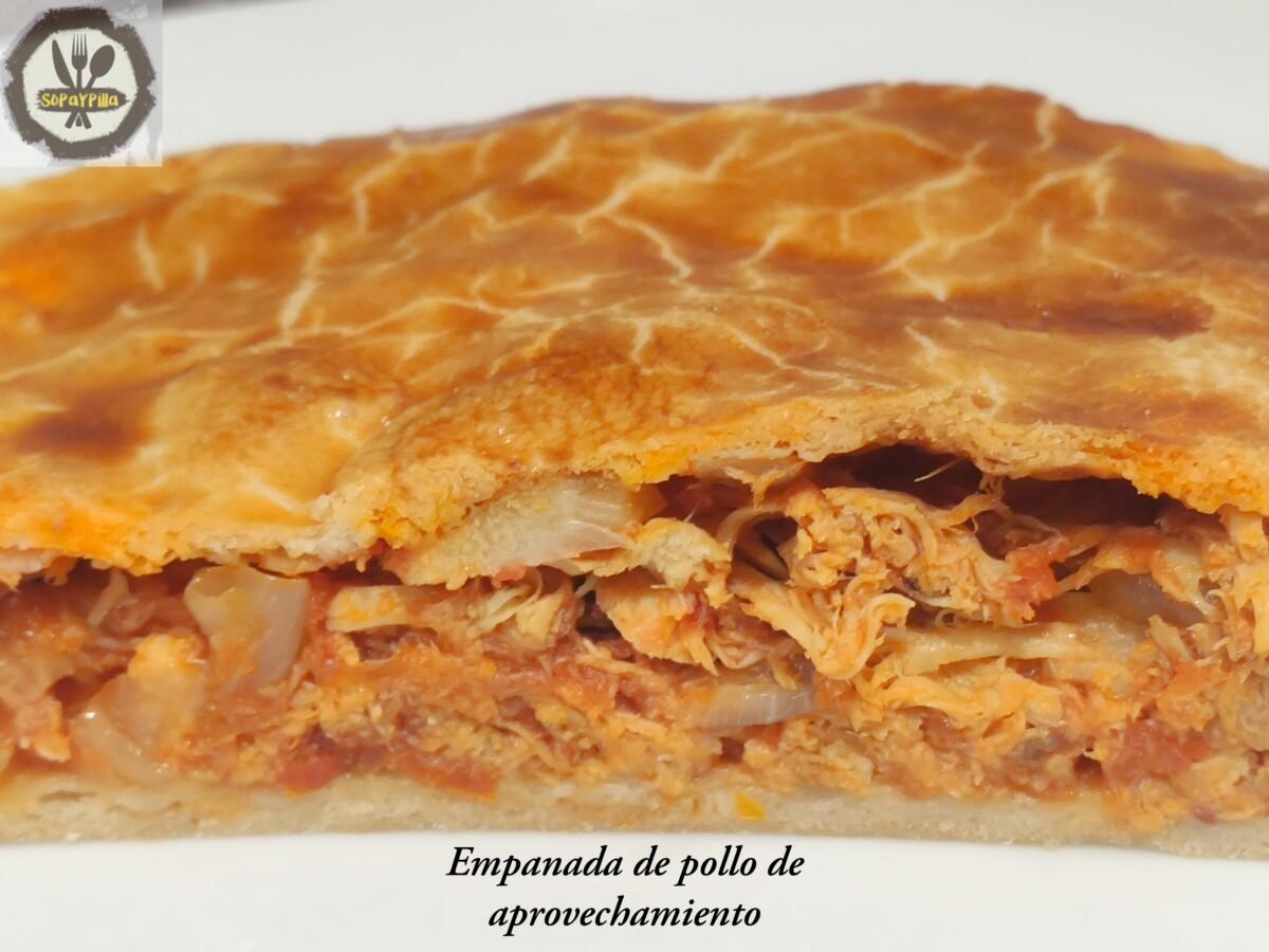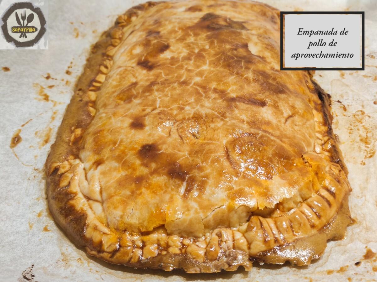 Un día abres la nevera y ves que tienes guardado el pollo de preparar el caldo, y en un rinconcito una masa preparada de empanada…Total que con poca cosa más, te metes en la cocina y dejas ya la cena preparada…me encantan las recetas de aprovechamiento!