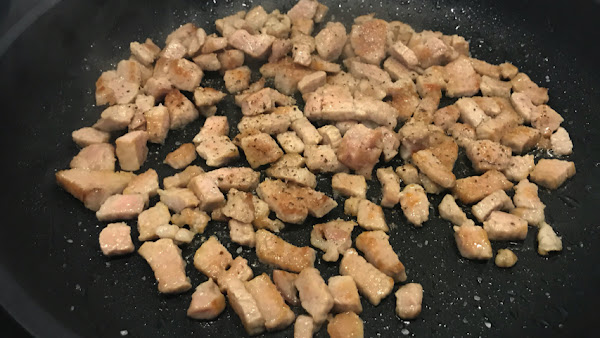 Cuando esté dorada la carne pero aún jugosa, para que no se seque, apaga el fuego y salpimienta. Reserva y deja que enfríe.