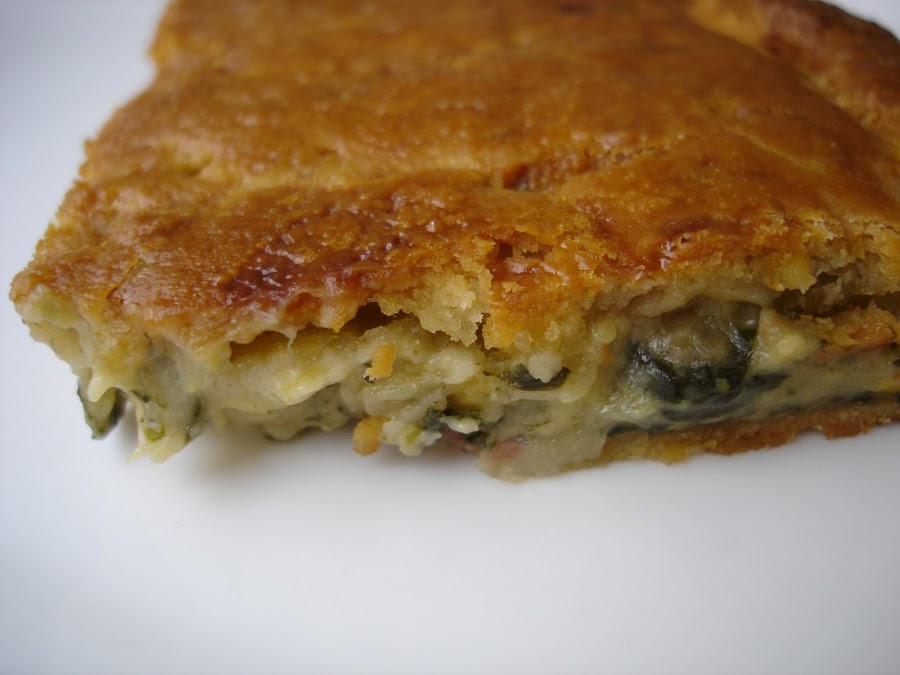 Coger la mitad de la masa y extenderla. Extender el relleno. Tapar con el resto de la masa y cerrar bien los bordes. Pintar con huevo batido.