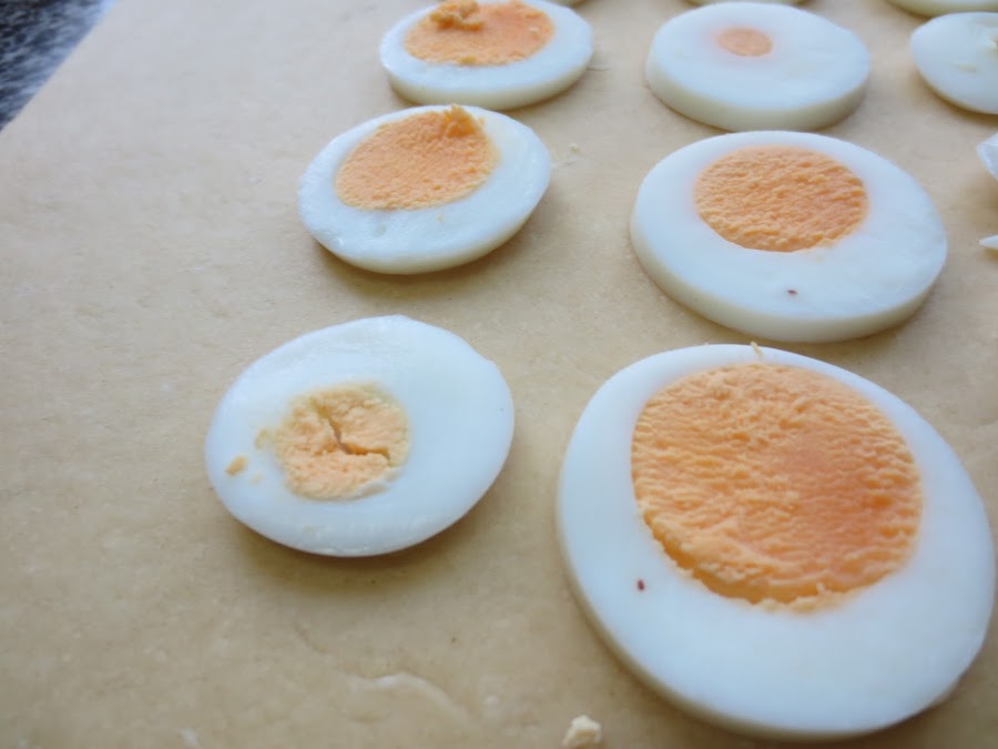 Colocar los huevos en láminas por la superficie para el relleno 1