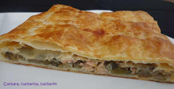 Una empanada exprés, ¡más rápido imposible! y que siempre triunfa. La podemos presentar en versión individual o entera. De cualquier forma, gusta a niños y mayores y nos puede servir como plato principal de una comida sin calentarnos mucho la cabeza y quedar como unos estupendos anfitriones en cualquier celebración. Y es que el hojaldre da mucho juego...