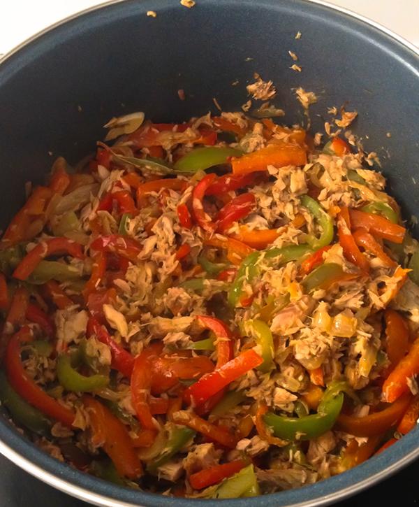 Una vez estén tiernos agregar las 2 latas de caballa y las 3 de atún, dejarlo cocinar tapado durante 20 minutos, controlando que este a fuego bajo y no se queme.