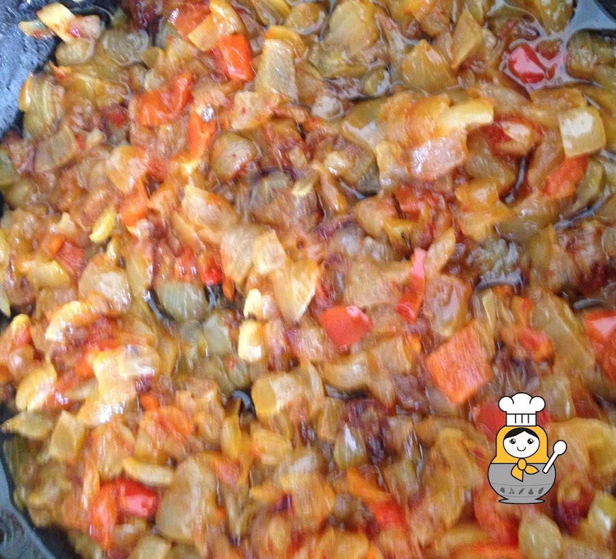 Mientras tanto preparamos el relleno de la empanada. En primer lugar, colocamos el atún en un colador para que se escurra bien todo el aceite. Picamos la cebolla y el pimiento en brunoise y lo sofreímos en una sartén con un chorro de aceite de oliva y el azafrán hasta que esté bien pochadita toda la verdura. Retiramos del fuego e incorporamos el atún. Removemos todo bien y reservamos el relleno.